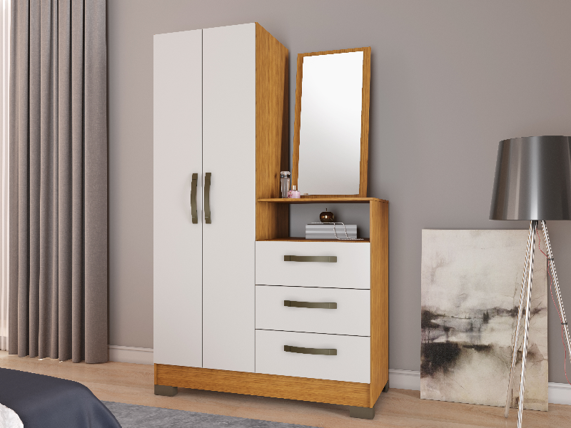 Altura: 1800 mm Largura: 1080 mm Profundidade: 400 mm Peso: 46 kg Volumes: 01 caixa Cubagem: 0,094 m³ DIFERENCIAIS: • Espelho inclinado • Gaveta com corrediças metálicas • Prateleira e cabideiro interno