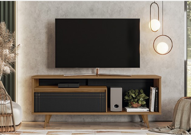 Altura: 660 mm Largura: 1630 mm Profundidade: 380 mm Peso: 35 kg Volumes: 01 caixa Cubagem: 0,077 m³ Capacidade de TV: 60” DIFERENCIAIS: • Tampo de 25mm • Frisos decorativos • Porta com pistão a gás • Pés em madeira maciça